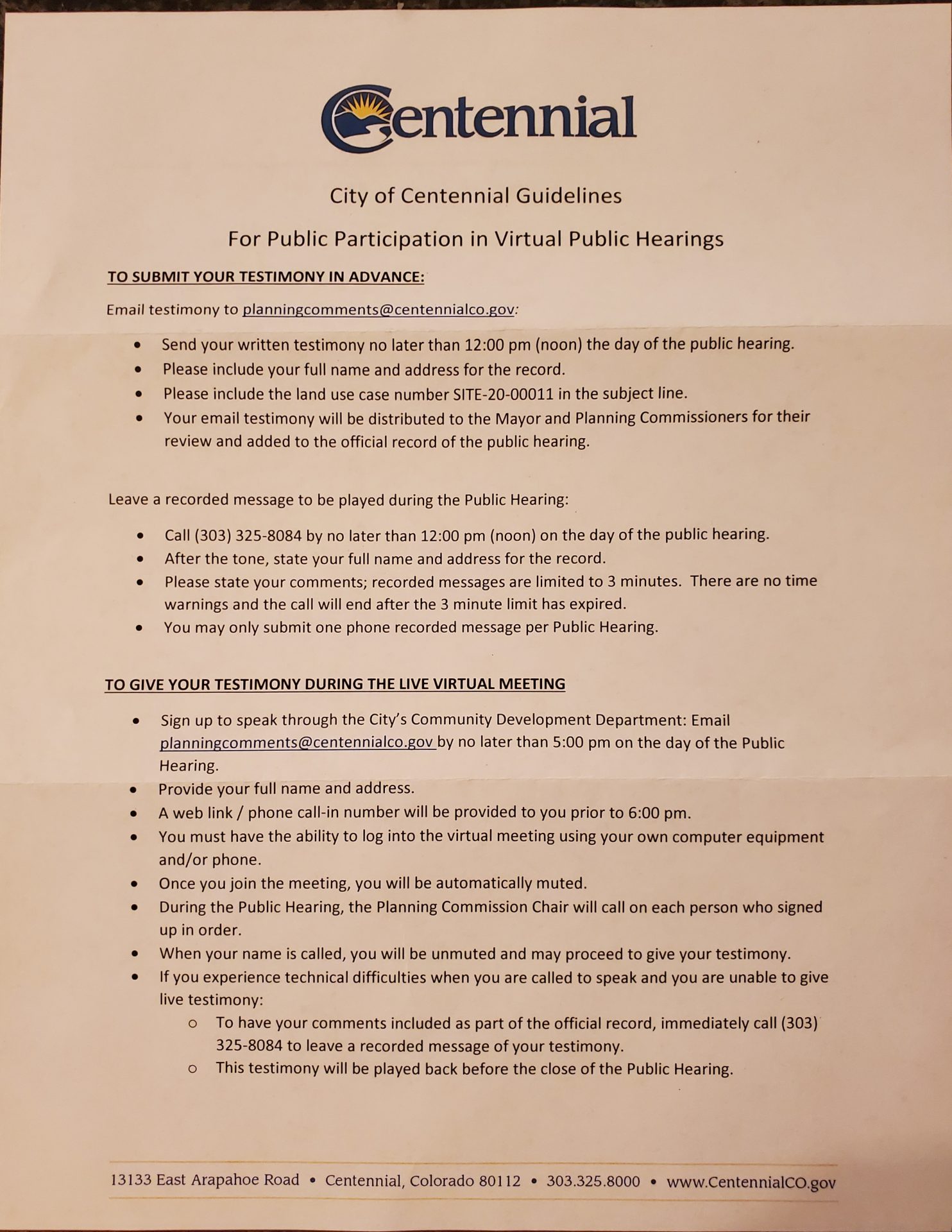 Community Meeting – Site Plan SW corner of E Peakview & E Euclid Ave →